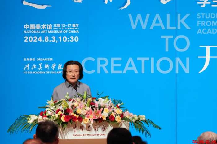 8月3日,由河北美术学院主办的“走向创作——河北美术学院书法学院学生作品展”在中国美术馆开幕。展览开幕式上吴为山、陈洪武、王廷山、甄忠义、姜寿田分别致辞。开幕式由著名主持人李兵主持。
