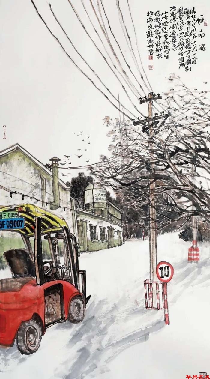 这些评价,精准捕捉了李钧艺术的独特质感。而这份特质,不仅展于宣纸,更源于他深扎生活沃土的写生实践。作为保定“大厂记忆”国画写生团成员,他曾历时两年,对保定西郊建于上世纪五六十年代的国营大厂进行抢救式写生。斑驳厂房在他笔下获得最后的艺术生命——有时墨迹方干,画中景致便已随拆迁尘埃逝去。这批作品因而超越艺术记录,成为一代人的集体记忆与一段城市工业历史的珍贵视觉档案。