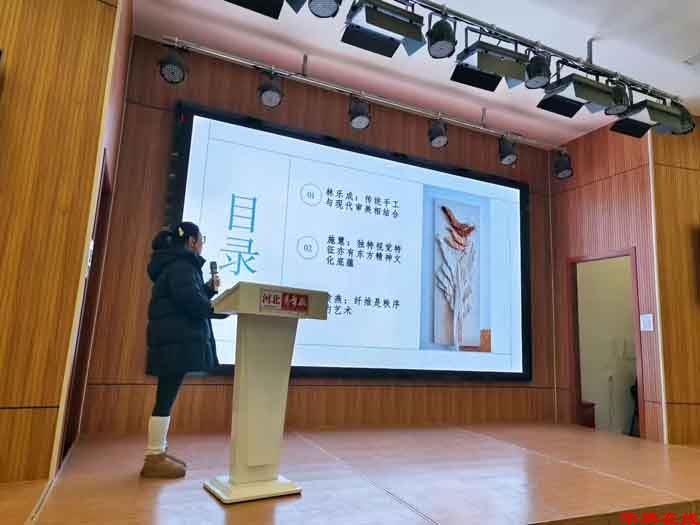 本次研讨会围绕设计与重构的分析研究为核心,进行学术议题探讨,马若麟、李晓悦、王金欣、于点、张闪、李欣瑶、吴映萱7位硕士研究生分别从国画、油画、综合材料等多元艺术领域切入展开专题学术分享。分享环节中,汇报者以典型艺术家作品案例为载体,通过对作品视觉形态的解构、构图与构成的分析及创作理念的深度解析,将抽象的设计重构逻辑转化为具象化的学术表达,实现了议题的多维度、立体化呈现。与参会师生围绕视觉语言的构成范式、重构路径等关键理论内容展开深度地观点阐释与思想交融,本科生设计专业王子甄、绘画专业王梦佳等同学参加互动交流。为艺术领域的跨媒介研究搭建了高质量交流平台,从而助力相关研究方向的理论拓展与实践探索。