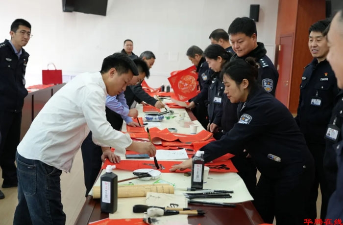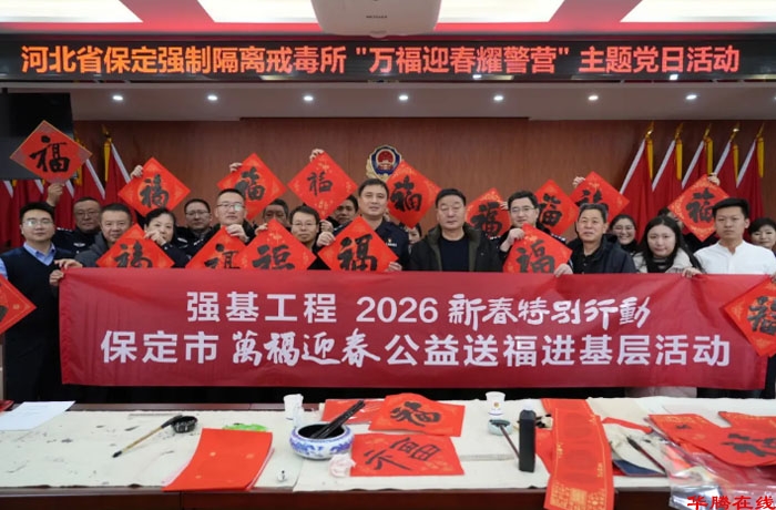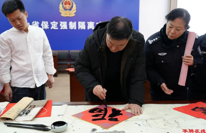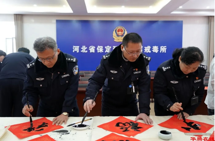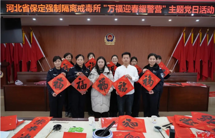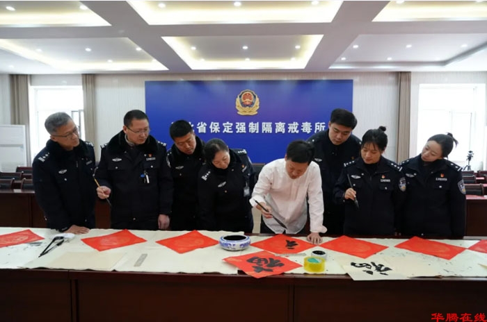 骏马贺岁,翰墨传情。为扎实推进戒毒场所文化建设,营造积极向上、温馨祥和的节日氛围,2月5日,省保定戒毒所联合民盟保定市委、保定市文联、市书法家协会,举办“万福迎春耀警营”主题党日活动,有效发挥“黄丝带帮教”机制职能,以中华优秀传统文化为载体,通过书法创作和艺术交流等形式,为戒毒民警送上新春祝福,促进戒毒场所教育戒治工作提质增效。