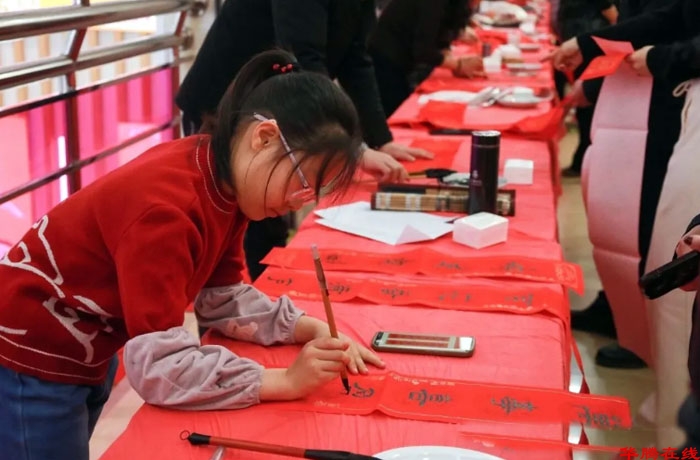 活动特别邀请易水书画院少儿书法班的学生们同台参与,小书法家们认真执笔、用心书写,虽笔法尚显稚嫩,却满含童真与热忱,在实践中感受传统书法魅力,传承中华文脉。老少同书、墨韵交融,成为活动现场一道温馨动人的风景。